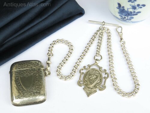 Victorian Silver Double Pocket Watch Chain & Vesta