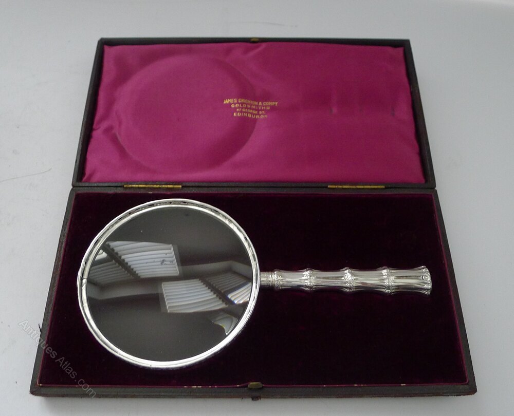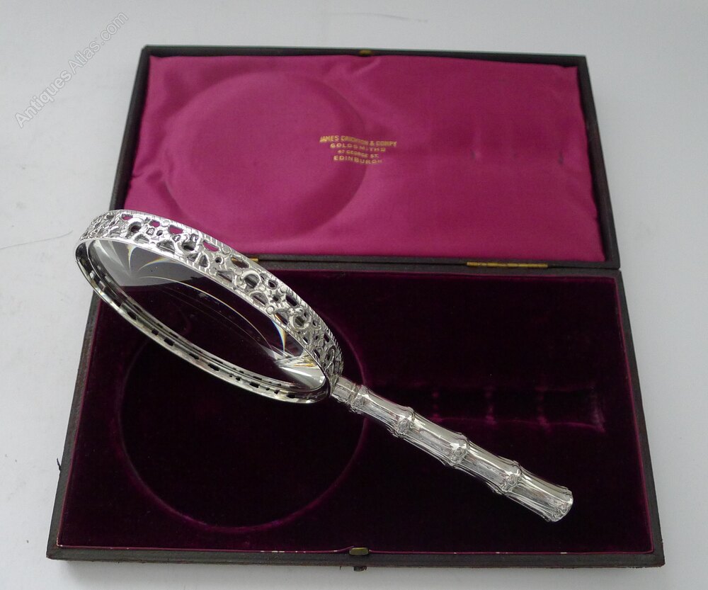A truly fine example of a Scottish solid / sterling silver magnifying glass within it's original presentation case.