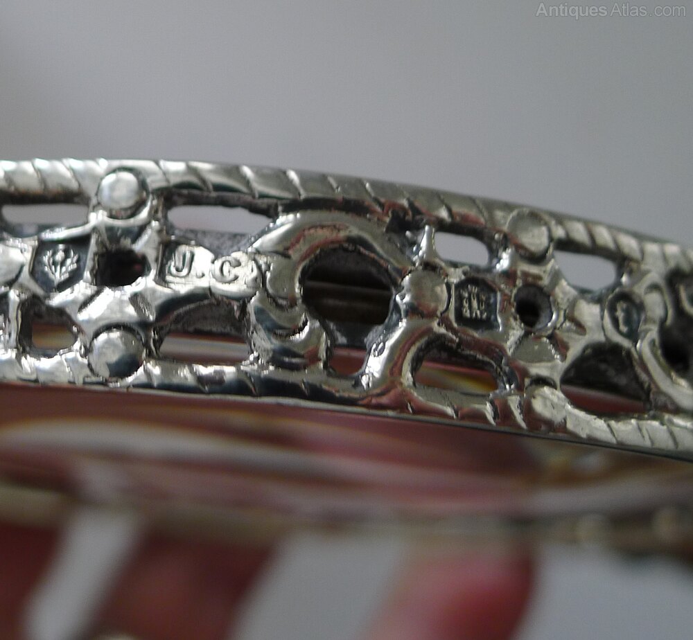 The attractive pierced or reticulated frame around the glass has a lovely set of hallmarks for Edinburgh 1887 together with the Queen Victoria's head duty mark and the makers mark for James Crichton of George Street, Edinburgh.