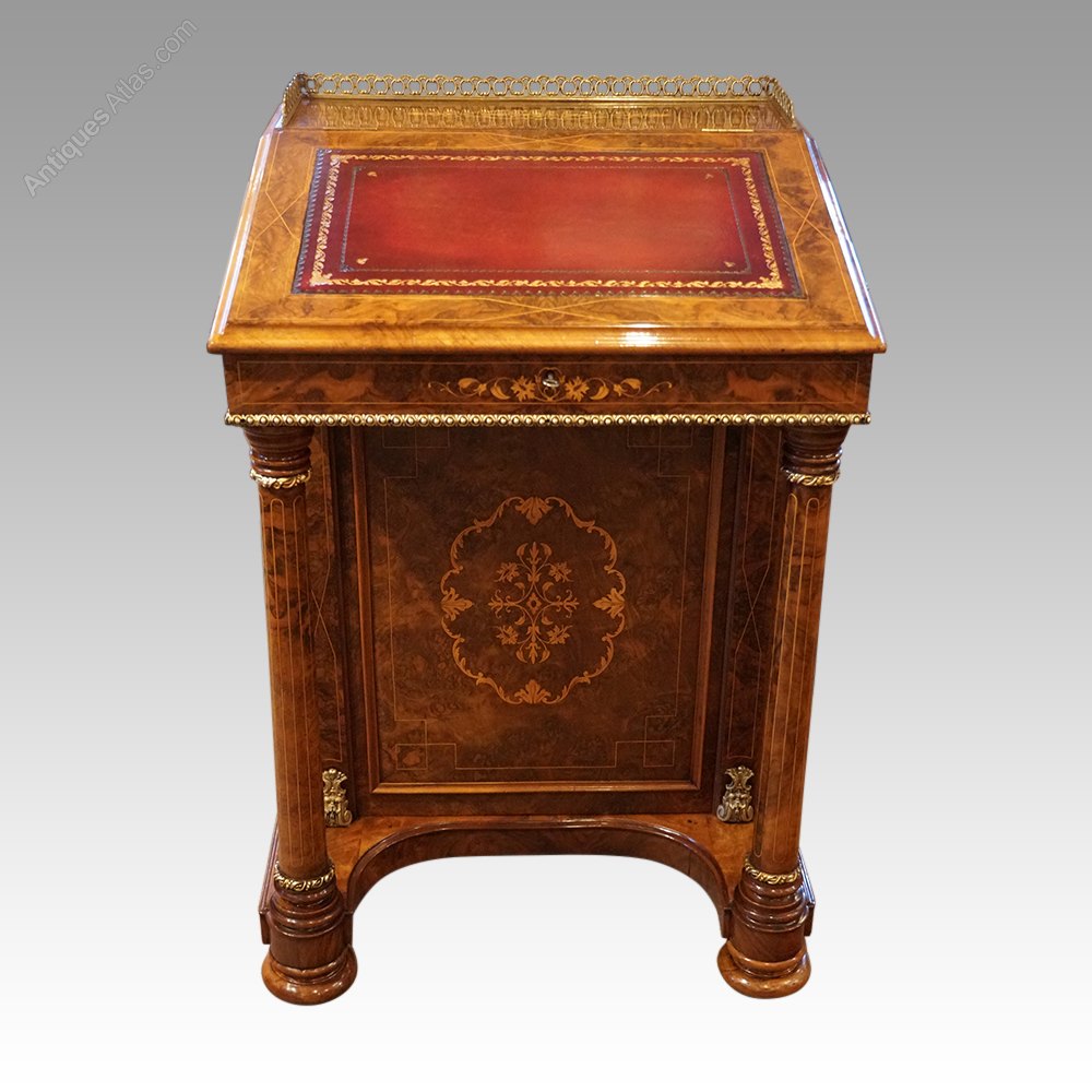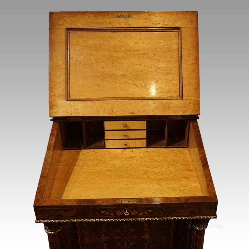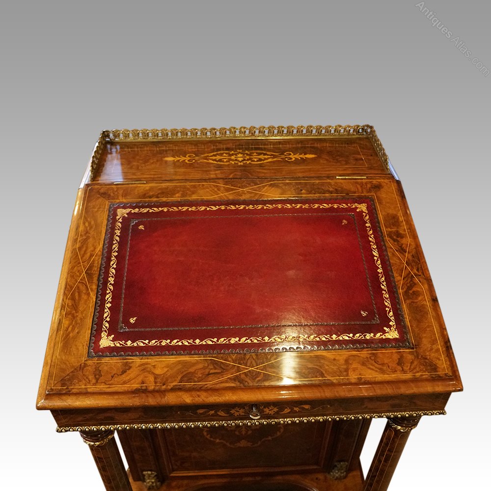 This Victorian walnut inlaid Davenport was made circa 1870.