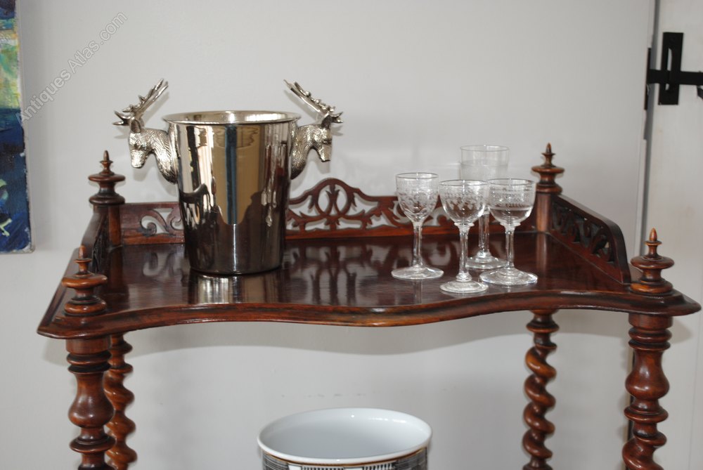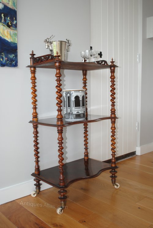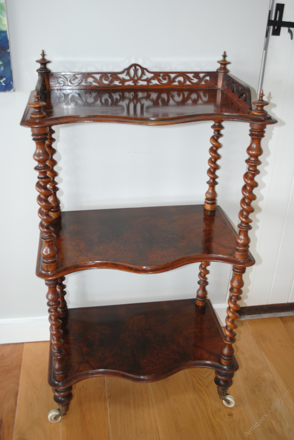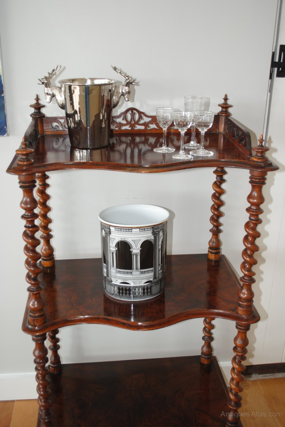 This is a lovely Antique 3-Tier Serpentine What-not in mint condition. Made of walnut, it dates from the middle of Queen Victoria's reign and is in lovely original condition with no alterations or adaptations.