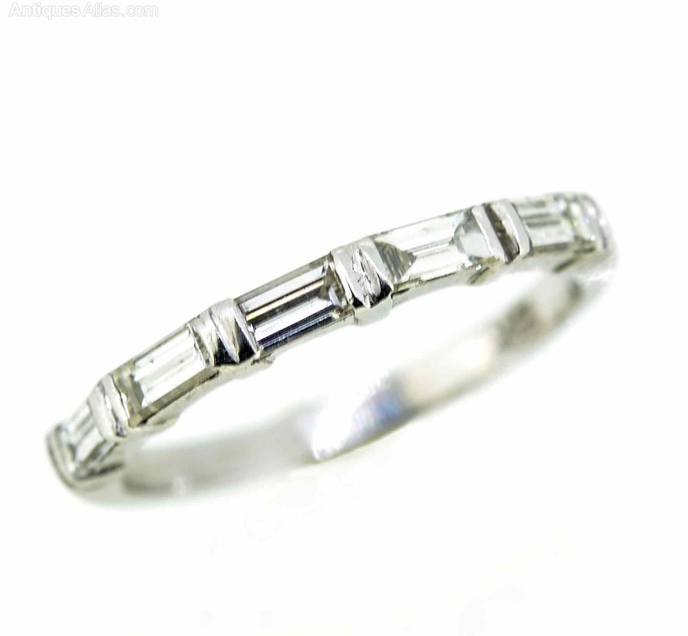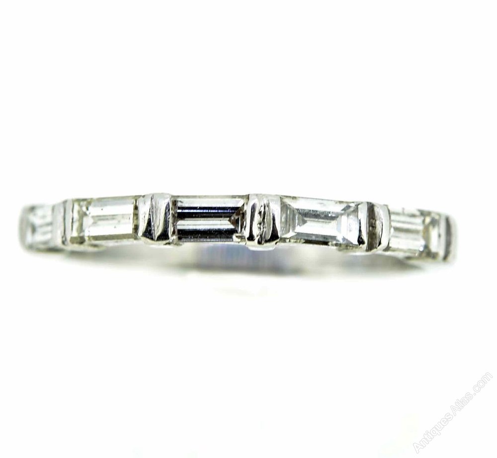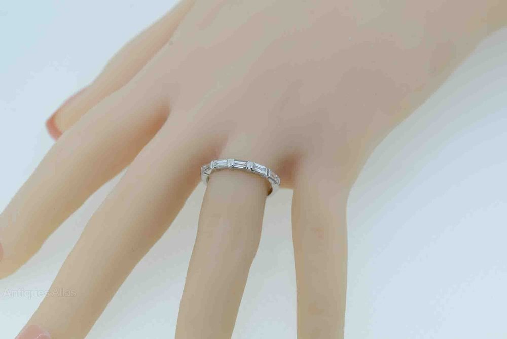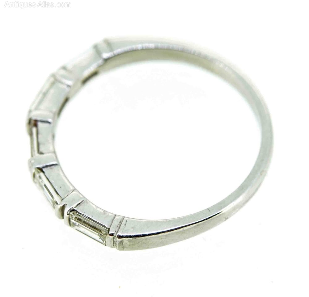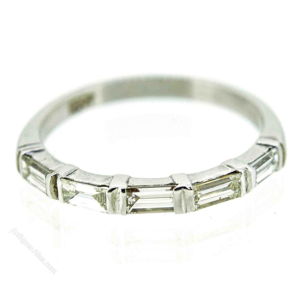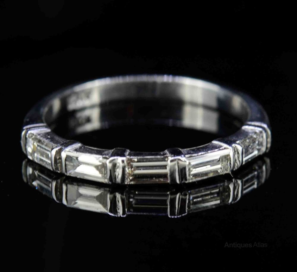 This sleek and extremely wearable vintage diamond half eternity ring hails from the 1950s and features five baguette cut diamonds mounted in 18ct white gold.