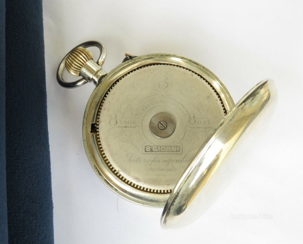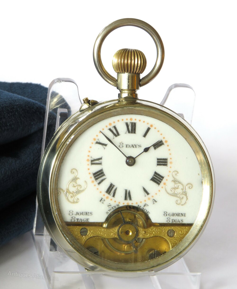 The dial is in lovely condition with original pin-set blued steel hands, hand gilded detail, an exposed balance and the wording ‘8 days’ in English, French, Italian, German and Portuguese.