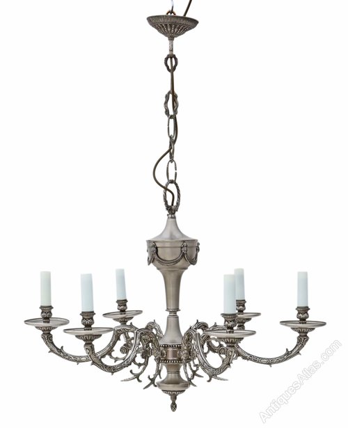 Vintage 6 Lamp Arm Silvered Brass Chandelier