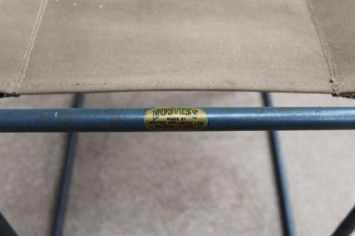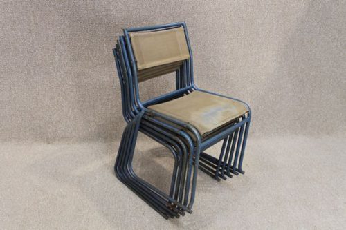 An unusual model of 1950s canvas stacking chairs. A fantastic addition to our large and extensive range of tubular steel stacking chairs these unusual and highly desirable superb quality hostess vintage canvas and metal stacking chairs feature a pale brown canvas seat and back, and blue tubular steel frame. All of the chairs are in good condition for their age. Ideal for any pubs, clubs, restaurants, vintage interior etc. A unique style of chair, offering something a bit different.