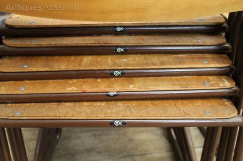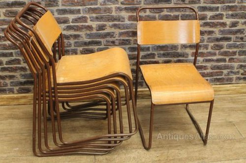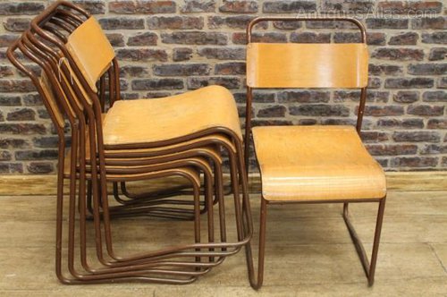 These superb and extremely sturdy original stacking chairs are fitted with curved wooden seats and back supports.