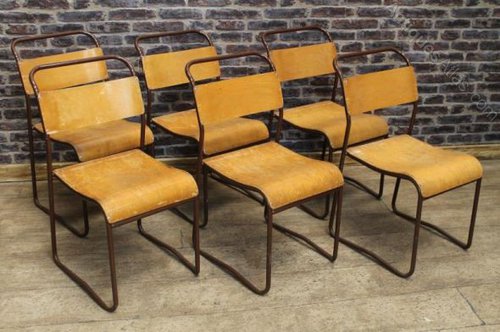 All of these vintage wooden stacking chairs are in good condition with no breaks to the steel work, but as you can appreciate, being used on a daily basis, there may be marks to the paint work, and wear and tear to the seats which we feel adds to their character.