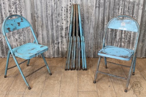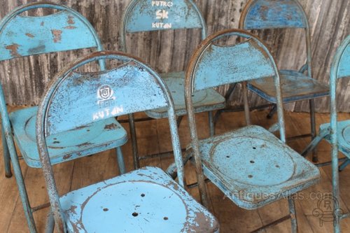 These vintage industrial folding blue chairs are a great addition to our extensive range of original and industrial antique furniture.