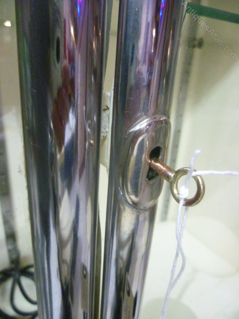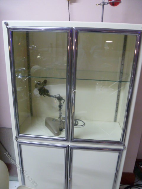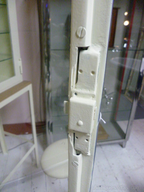 Vintage 1930s industrial painted & polished medical cupboard with internal glass shelves, working lock & key