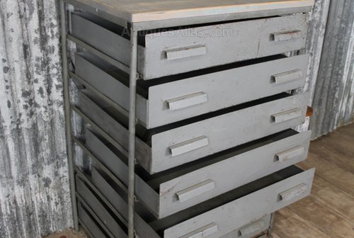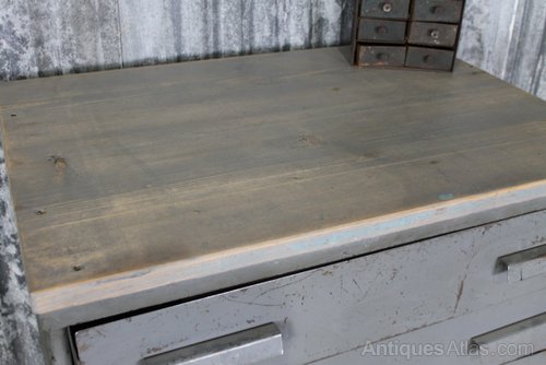 They feature various drawers and storage capabilities, and reclaimed wooden tops. These are all original industrial pieces that are suitable for domestic or commercial use in particular they could be used as coffee stations, sideboards etc.