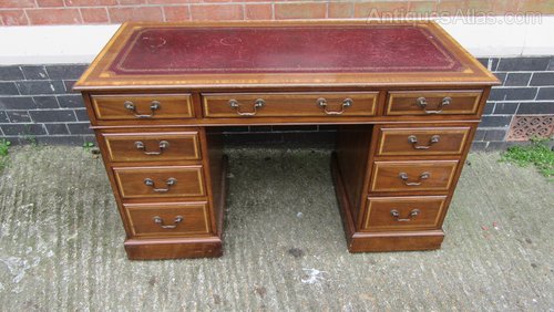 Vintage Inlaid Edwardian Style Pedestal Desk