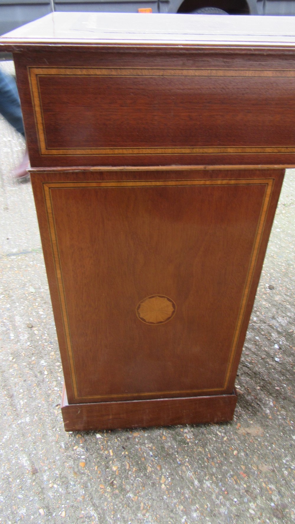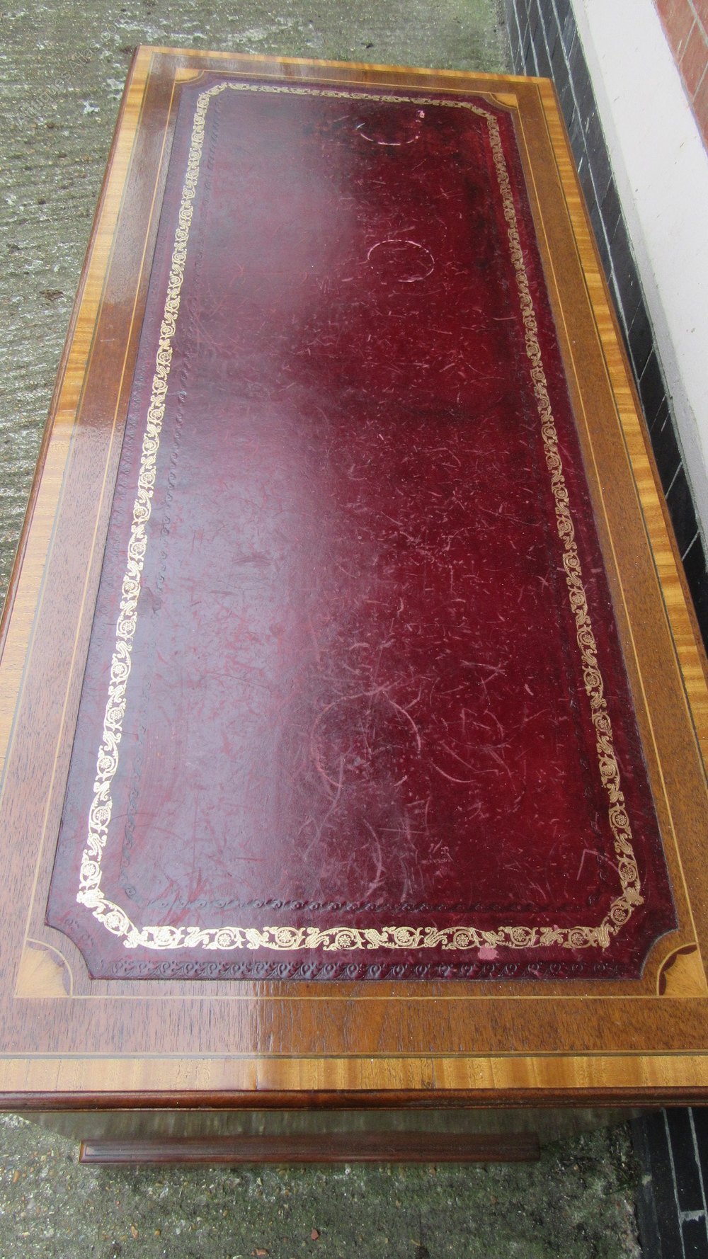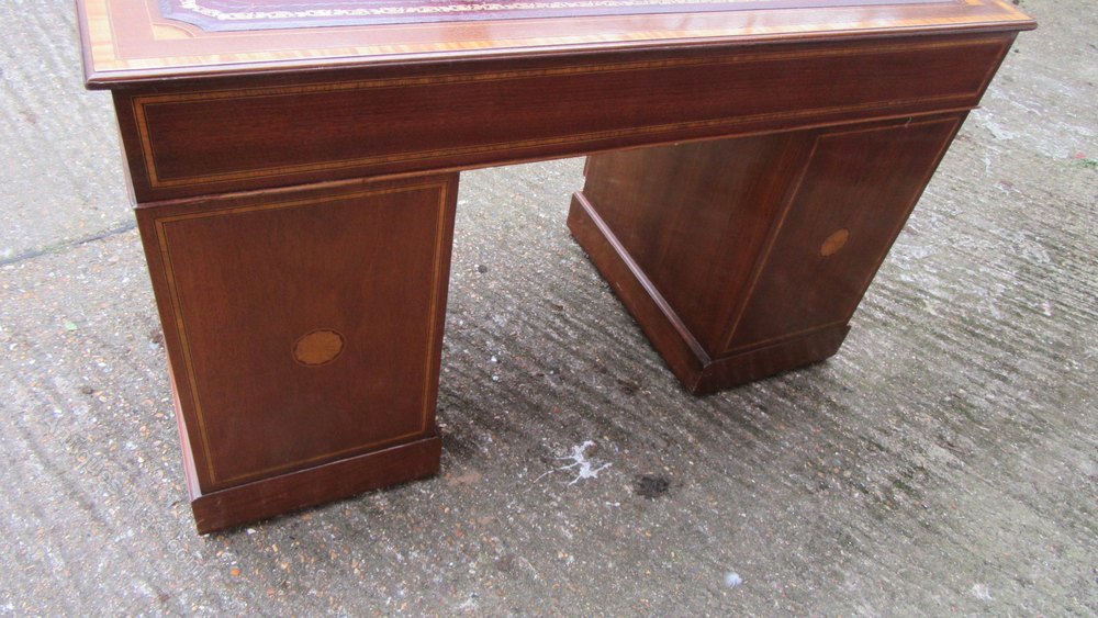 Vintage Inlaid Edwardian Style Pedestal Desk with Tooled Leather Insert .74 cm high ,123 cm wide,56 cm deep
