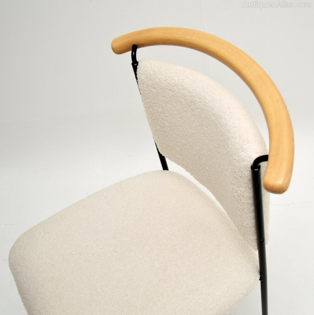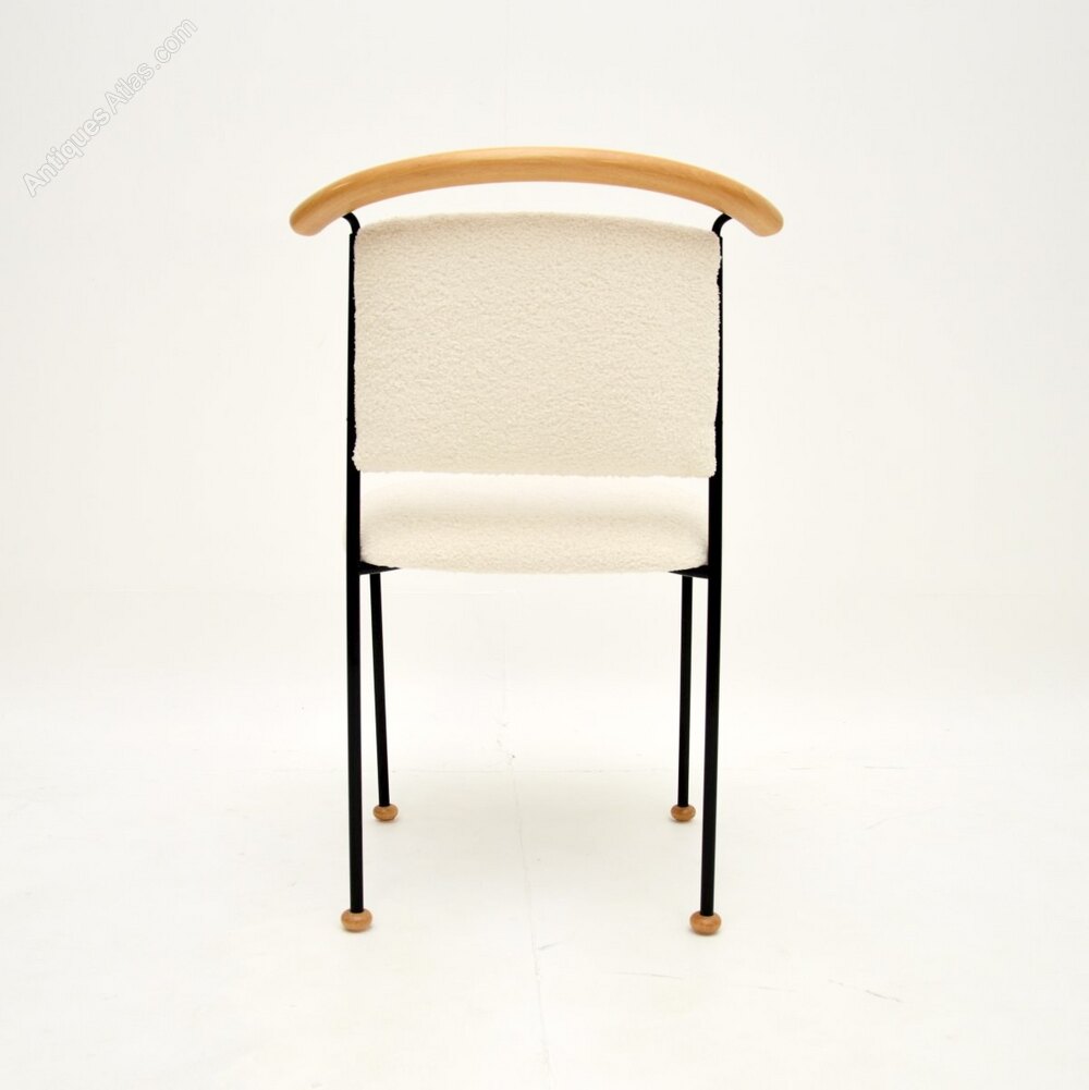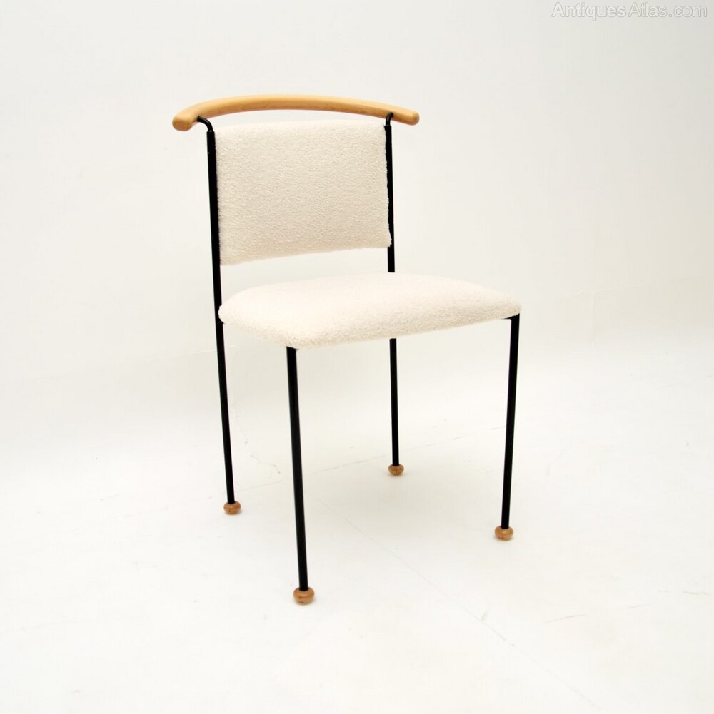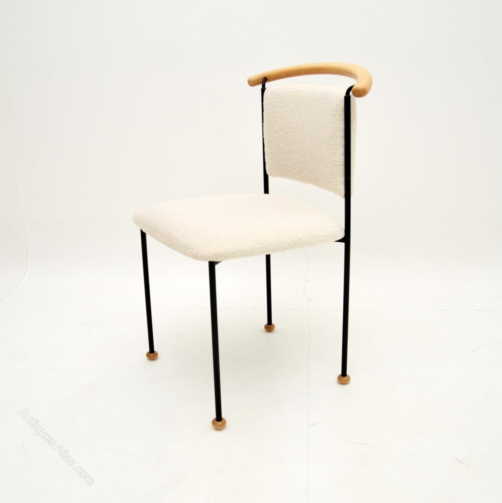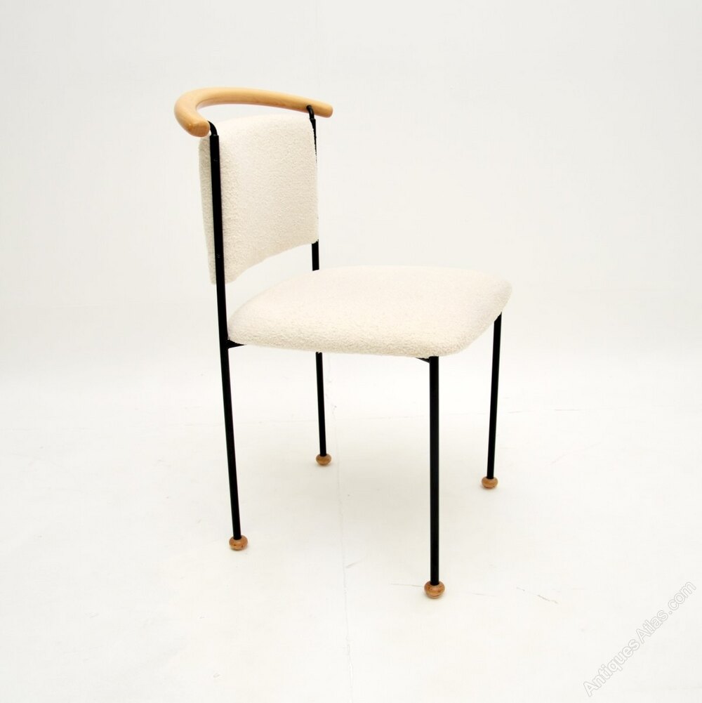 It is of superb quality, with a quirky and quite unusual design. The black steel frame has a curved wood back rest and sits on small solid wooden feet. This would make a perfect occasional side chair or desk chair.