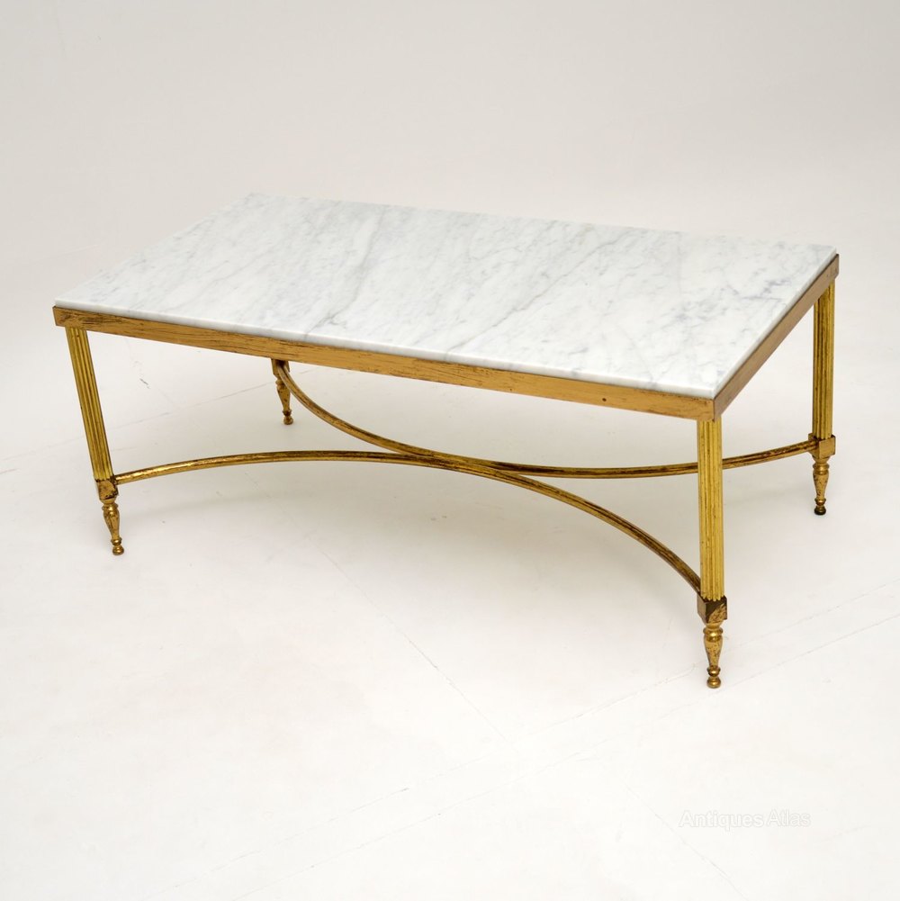 A stylish and very well made vintage coffee table in solid brass, with a stunning white marble top. This was made in Italy, it dates from the 1960’s.