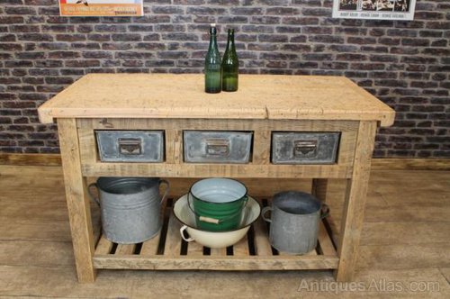 This beautiful piece with galvanised zinc drawers and solid beech worktop features lots of charm and character.