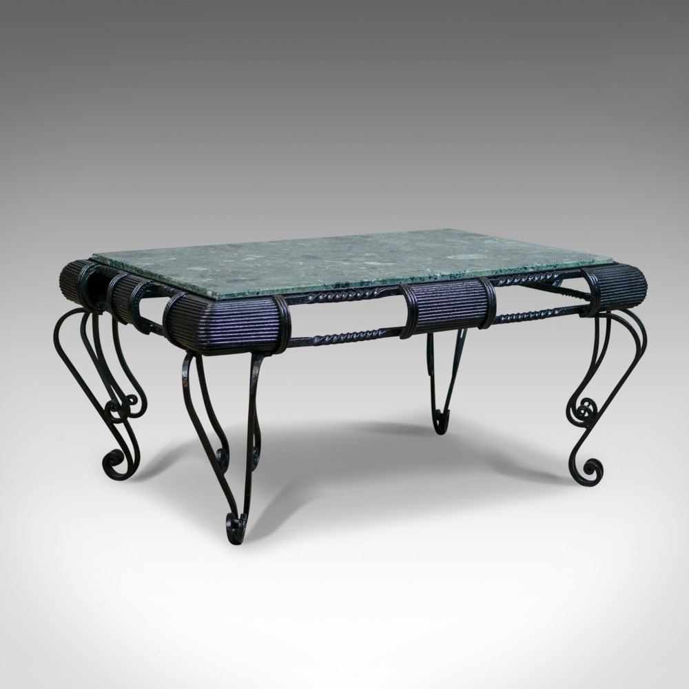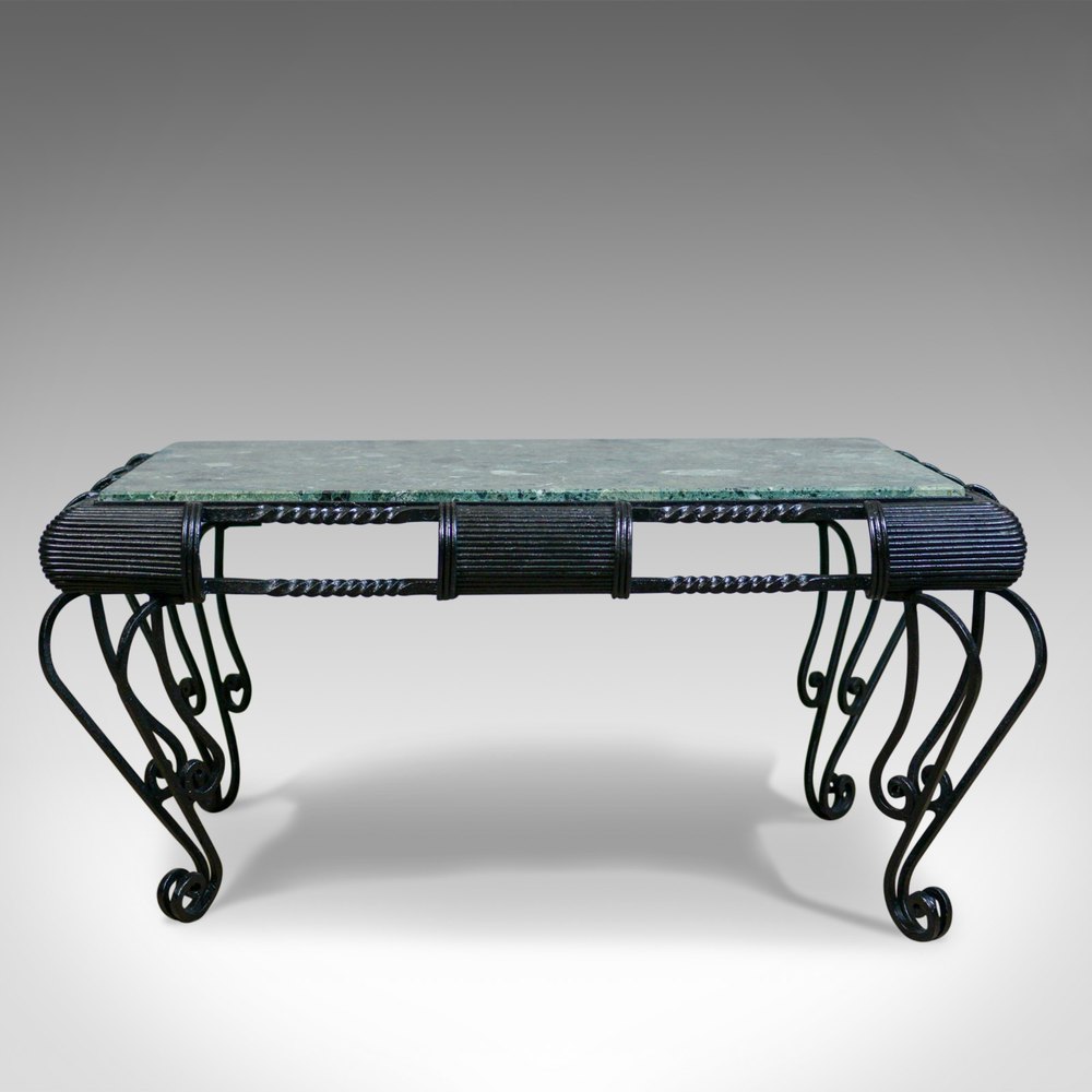 Vintage Marble Coffee Table, English, Iron Frame,