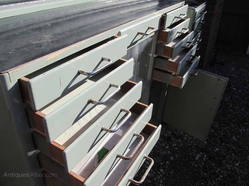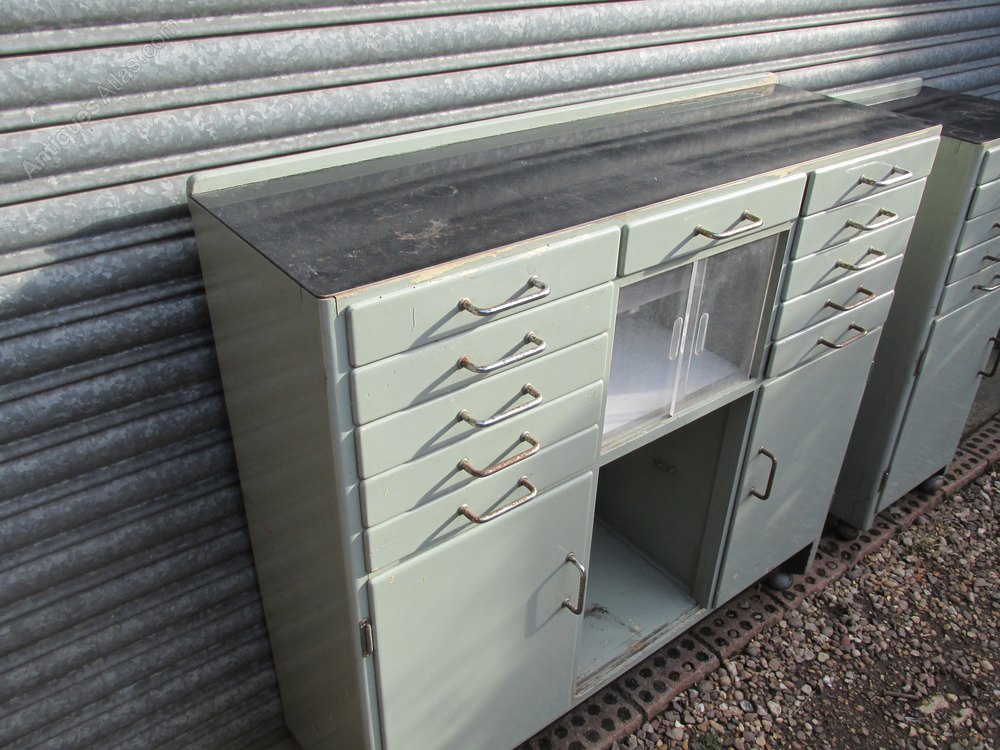 A mid century dentistry or medical cabinet once used by the military.The multi drawer cabinet is offered in as found condition and would benefit from some straightforward restoration.Please enquire for details.The cabinet measures 109cm x 34 cm x 106cm h.