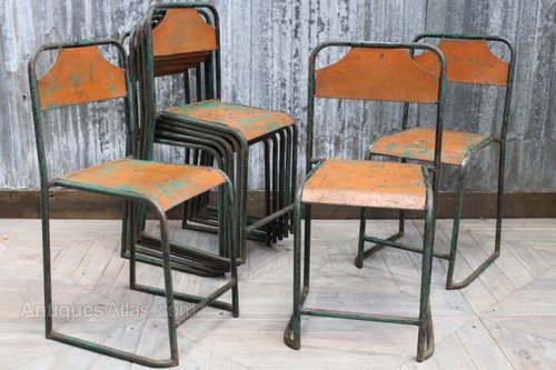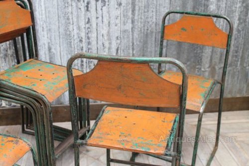 These vintage metal chairs come from our huge collection of industrial stacking chairs and were originally acquired from the ex-Soviet Union.
