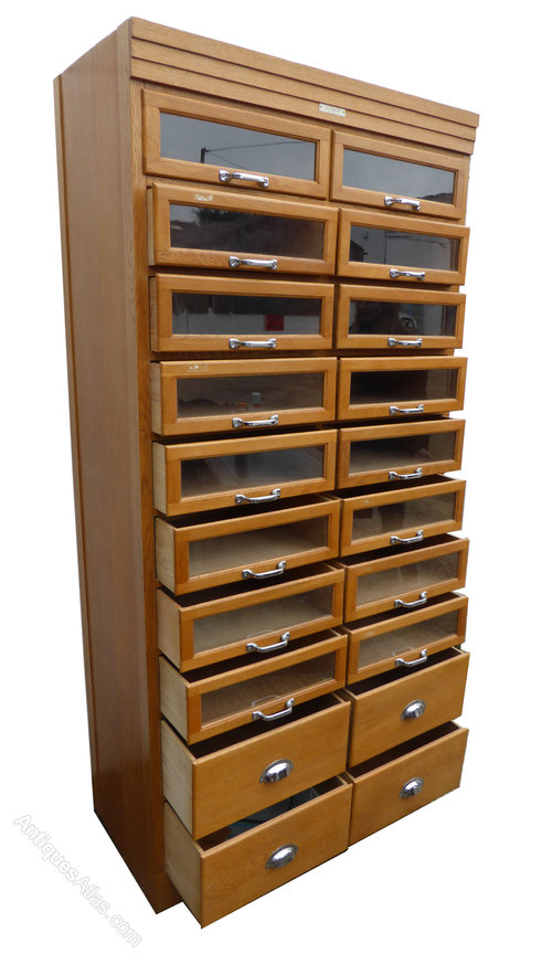 Vintage Oak 20 Drawer Haberdashery Shop Cabinet