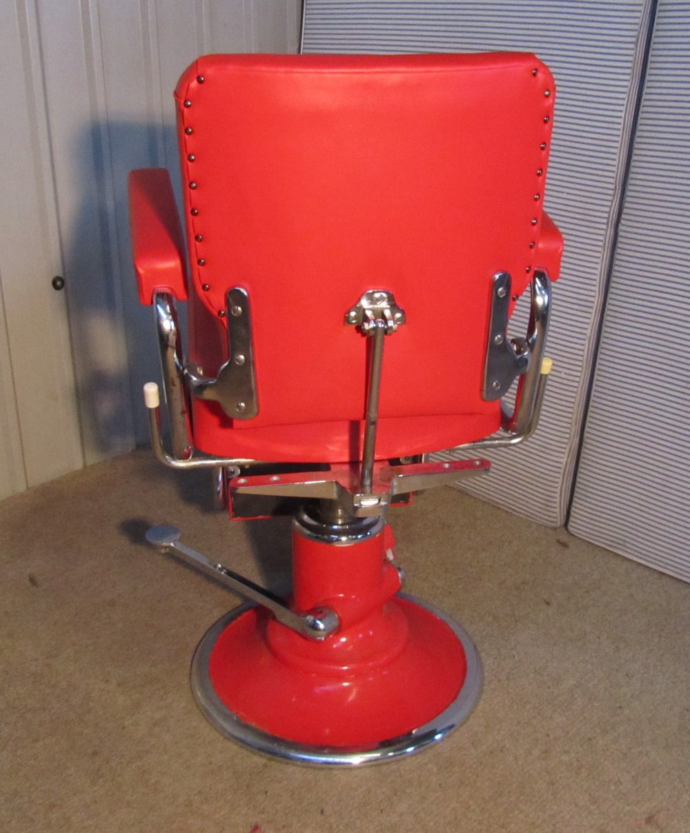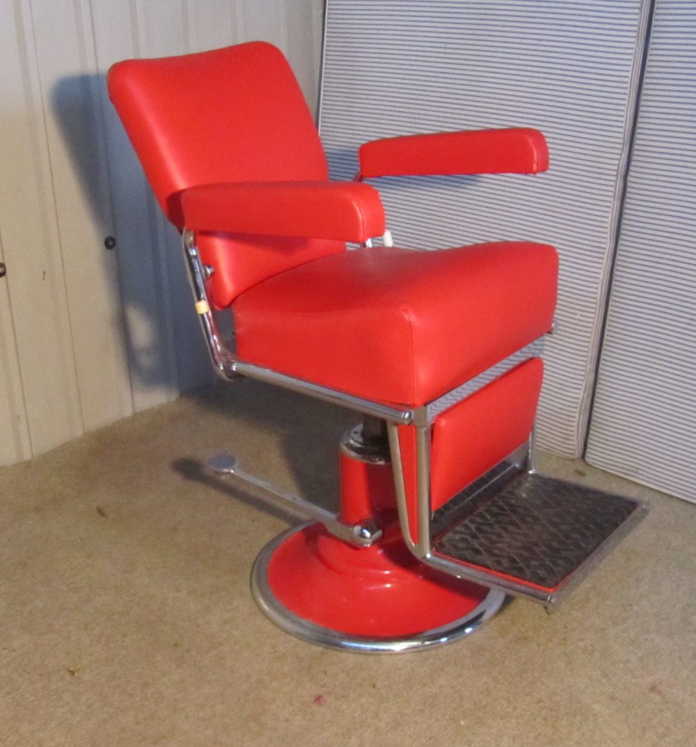 Vintage Retro Crimson Vinyl & Chrome Barbers Chair