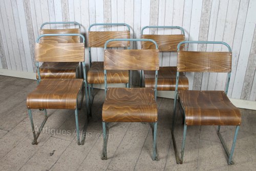 These vintage stacking plywood chairs are timeless pieces of classic and vintage industrial antique furniture.