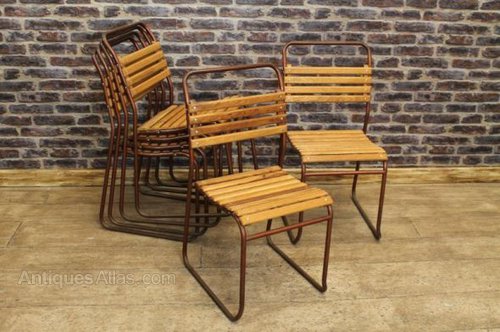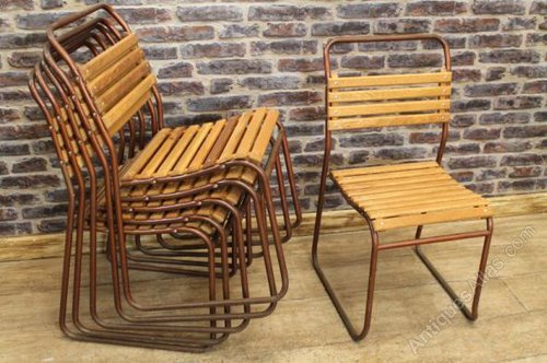 These slatted stacking chairs are truly timeless pieces of classic and vintage industrial antique furniture.
