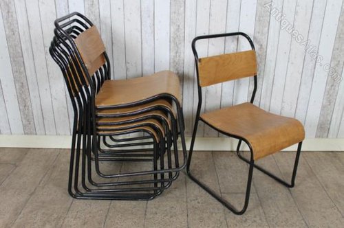 These vintage stacking chairs are timeless pieces of classic and vintage industrial antique furniture.