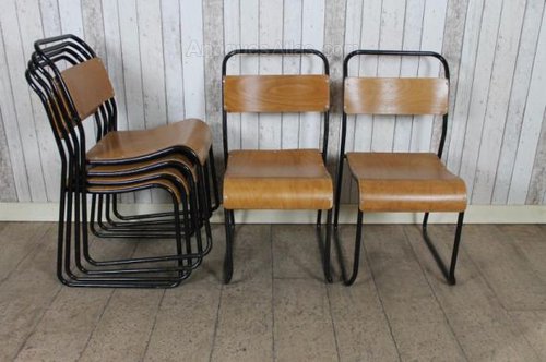These superb and extremely sturdy original stacking chairs are fitted with curved wooden seats and back supports.