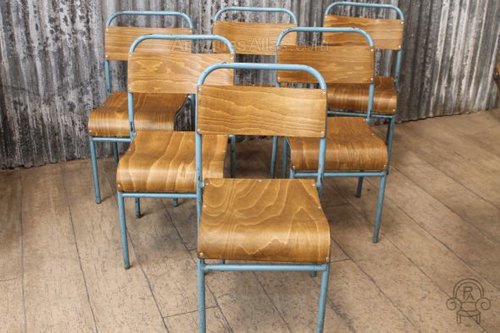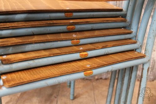 All of these vintage wooden stacking chairs are in good condition with no breaks to the steel work, but as you can appreciate, being used on a daily basis, there may be some signs of wear and tear, which we feel adds to their charm and urban appeal.