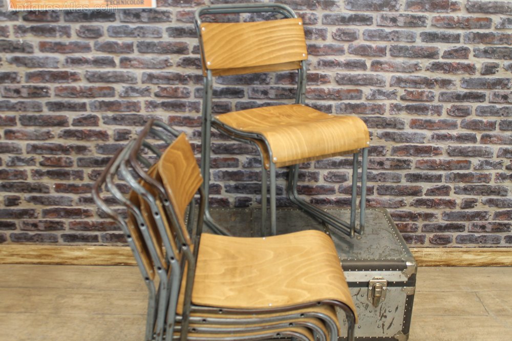 Vintage School Stacking Chairs With Ply Seat