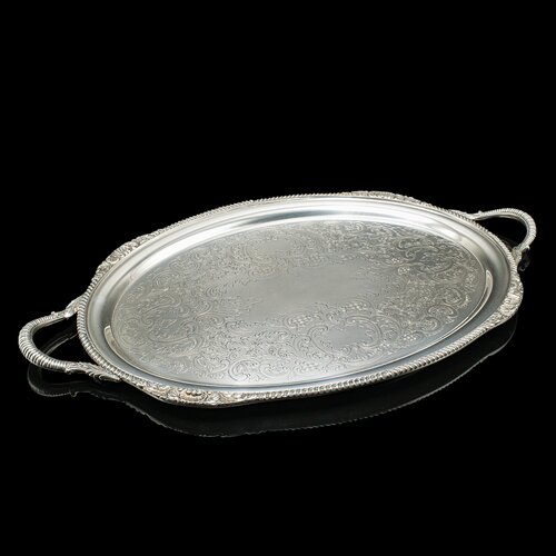 This superb vintage silver plated tray combines functionality and timeless sophistication, making it a beautiful decorative piece or a practical serving essential for a traditional or modern home. Delivered ready to enjoy.