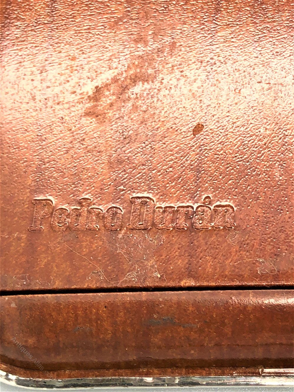 The lower left hand side of the frame is marked with 925 for Sterling Silver, M for Madrid assay office and 3 for Pedro Duran. It also bears the Pedro Duran signature and a small mark of an urn or vase. The wooden back is also marked Pedro Duran.