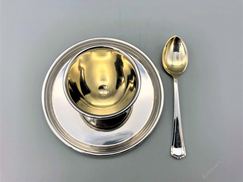 Vintage Silver Plate Egg Cup & Spoon Set, c.40/50s