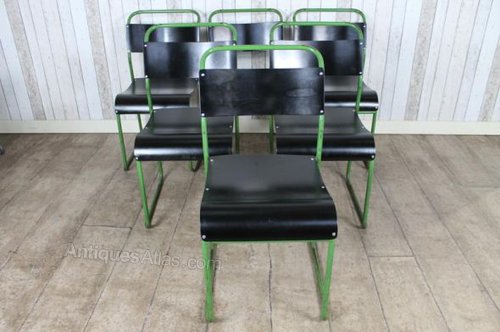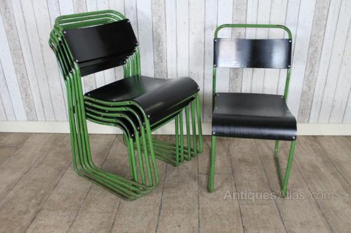Vintage Stacking Chairs With Green Frames