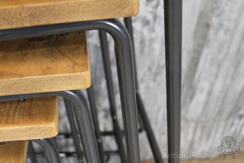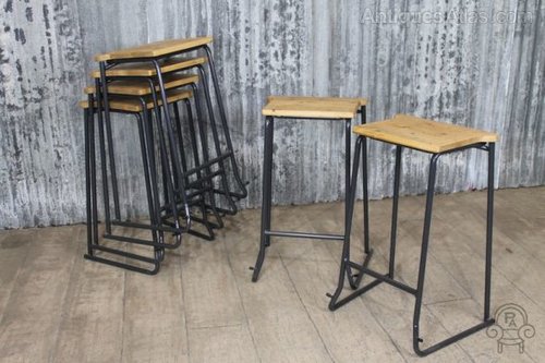 A fantastic opportunity to purchase some superb quality steel and timber circa 1960s stacking lab stools.