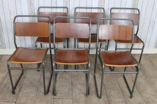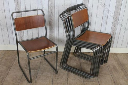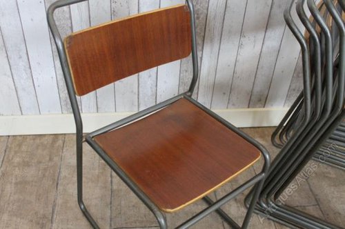 Vintage Stacking School Chairs With Dark Steel