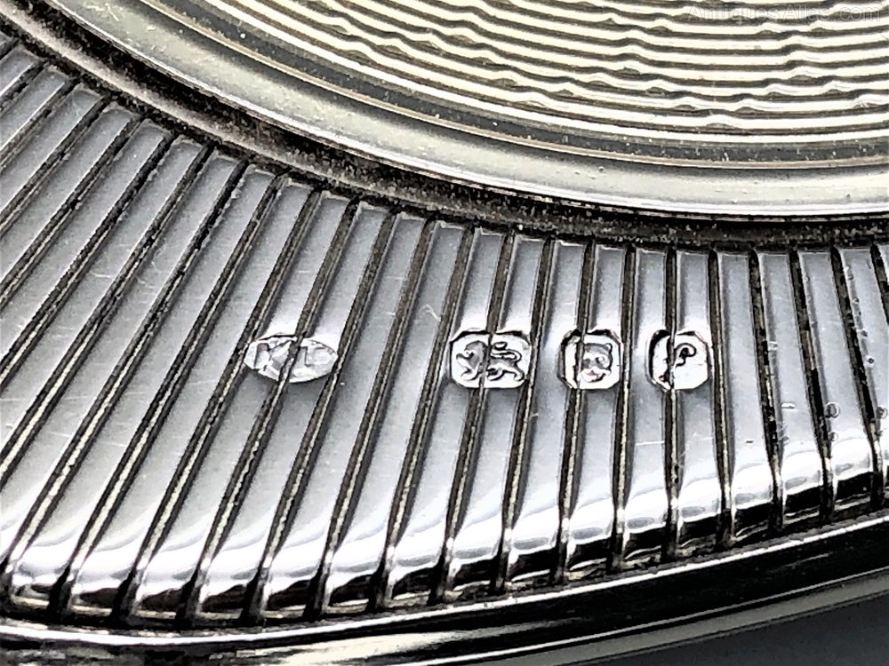 The hallmarks, on the inner tray, are nice and clear to read. They show the lion passant for Sterling Silver, the leopard's head assay mark for London, the date letter f for 1961 and the K Ltd makers' mark for KIGU of London. There are additional hallmarks on the inside of the lid and on the external catch release, so you can be sure that this is Sterling Silver throughout.