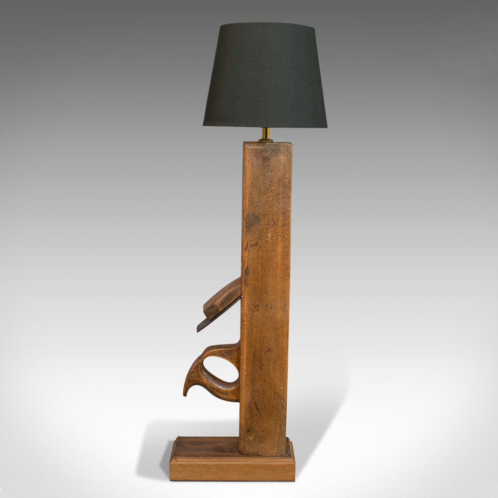 This is a vintage table lamp. An English, beech decorative light crafted from a bench plane and dating to the late 20th century.