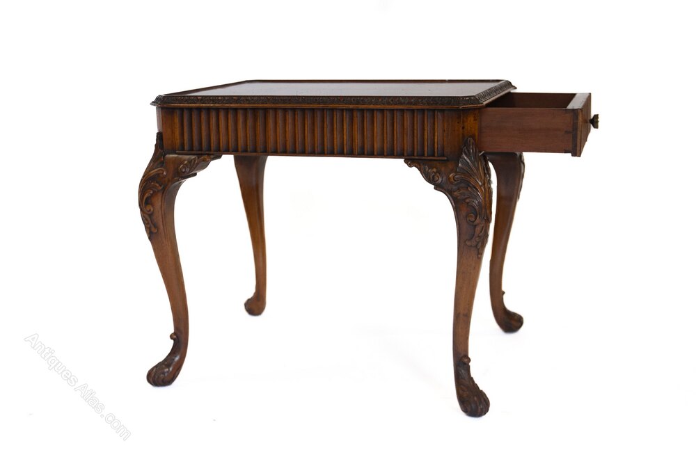Walnut & Carved Coffee Table With Drawer