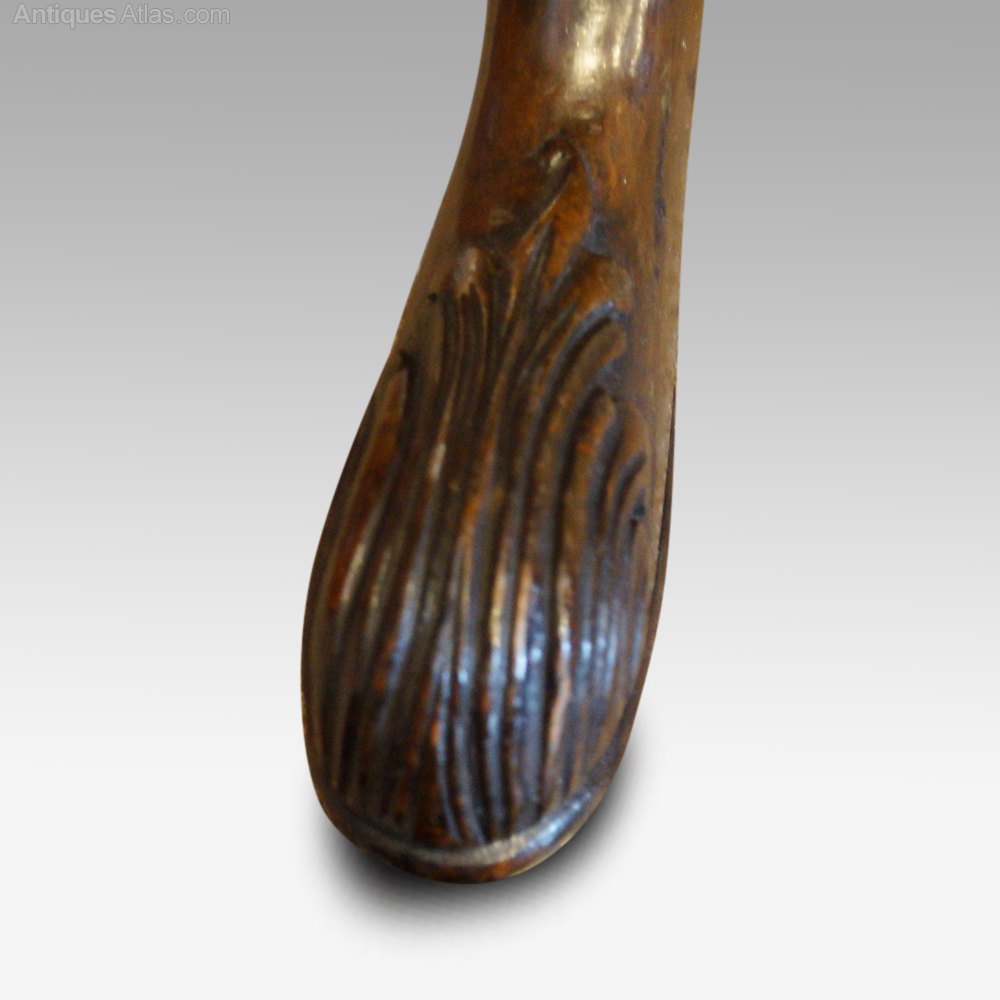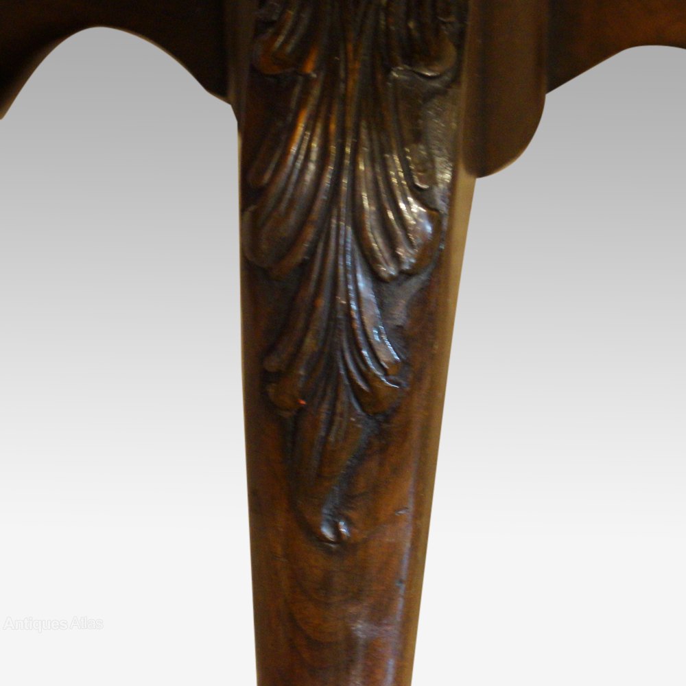 The legs with an acanthus leaf carving to the knee and leaf carving to the toes.