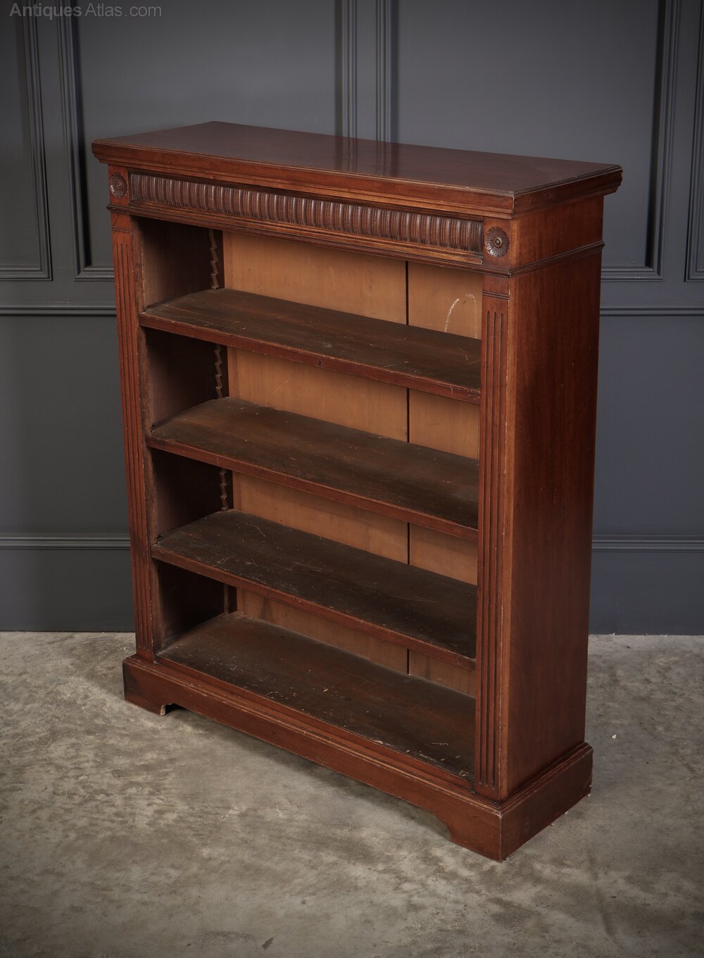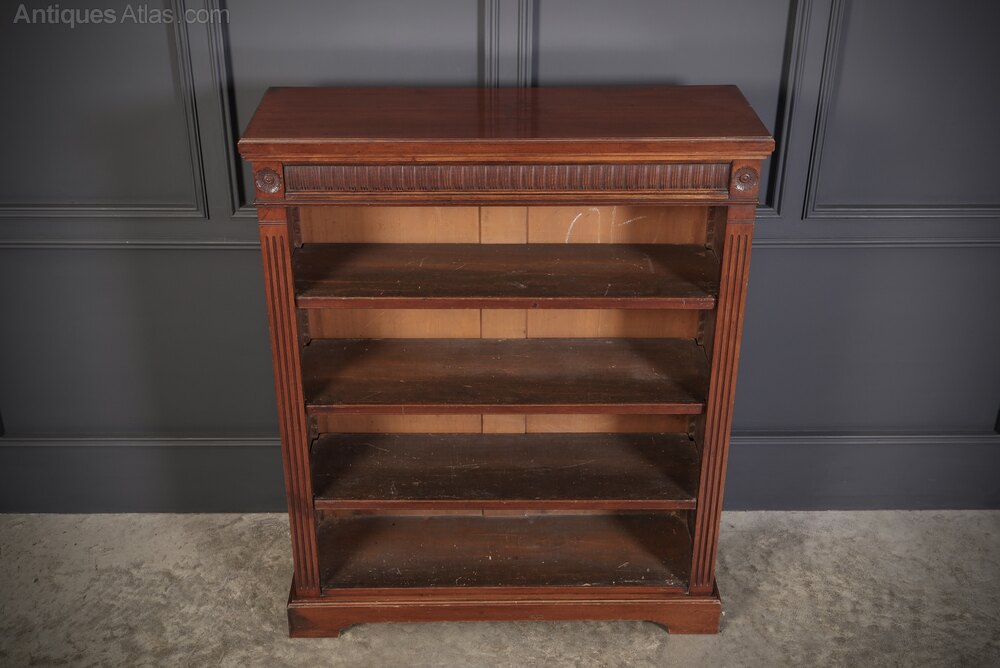 A neat open bookcase by sought after maker Jas Shoolbred.