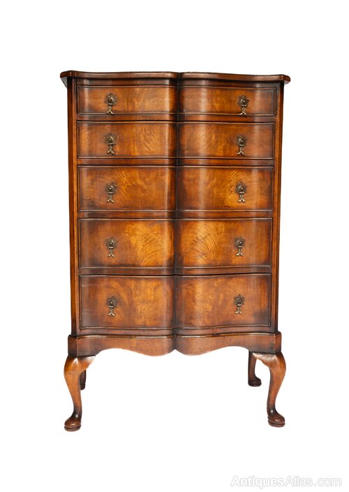 Walnut Queen Anne Style 5 drawer chest 1920s