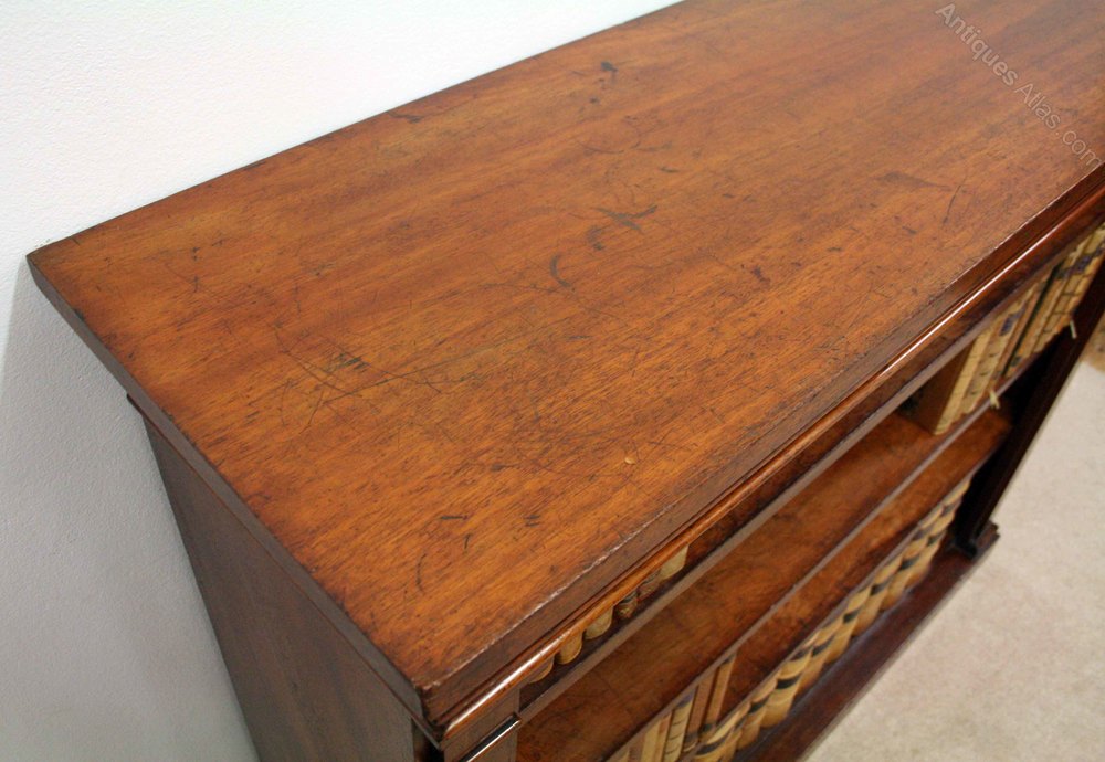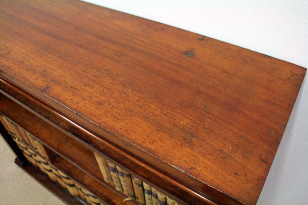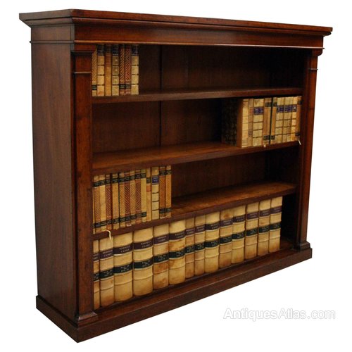 Circa 1835, William IV mahogany open bookcase. The rectangular top has a flat fore edge over a small ogee moulding and a small apron which is finished with a round beading. Beneath this is the open section with 3 adjustable shelves and simple stylish pilasters either side. The whole piece stands on a simple enclosed plinth set slightly forward to accommodate the pilasters.