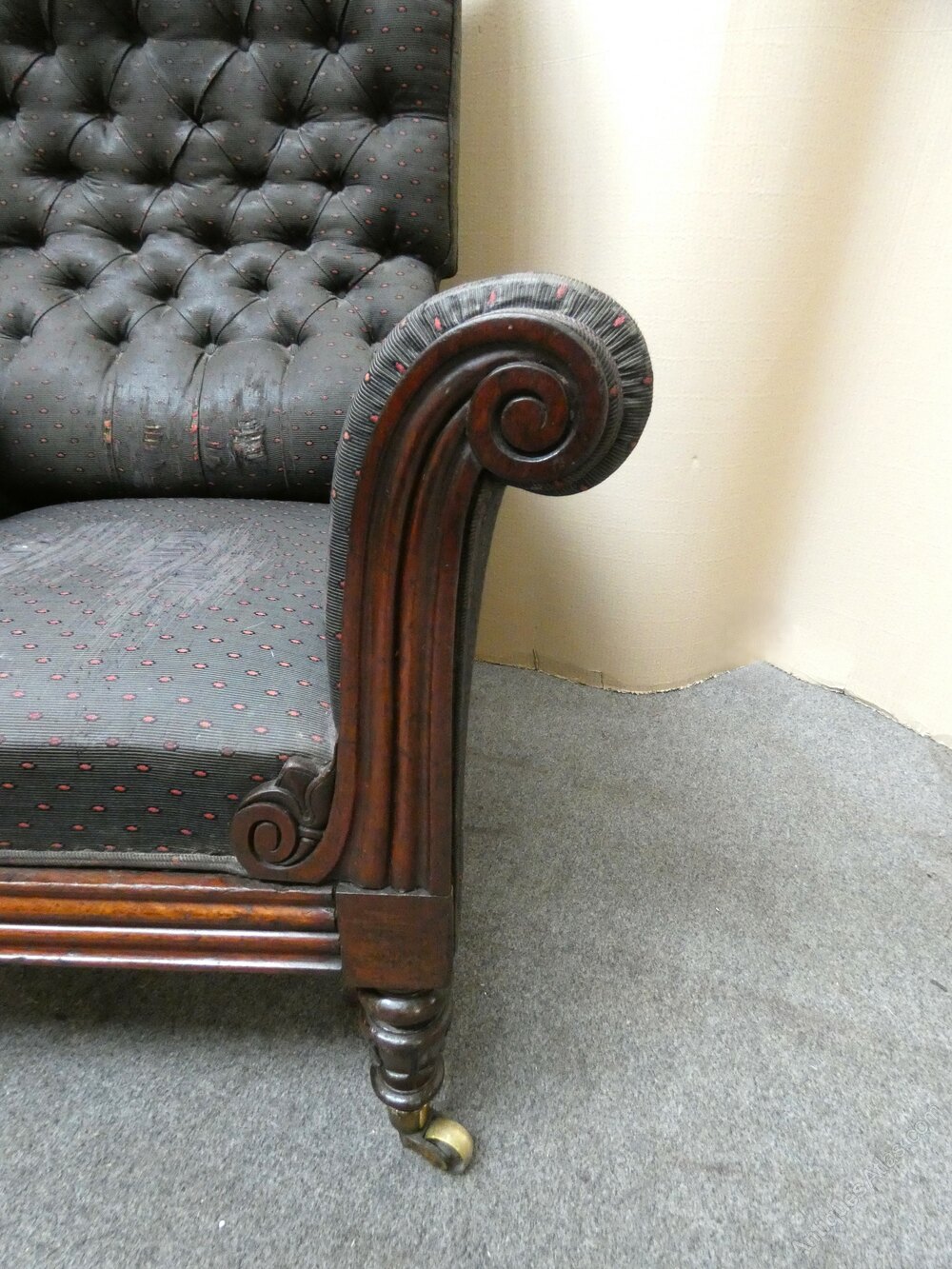 This quality chair is structurally sound but would benefit from being reupholstered.