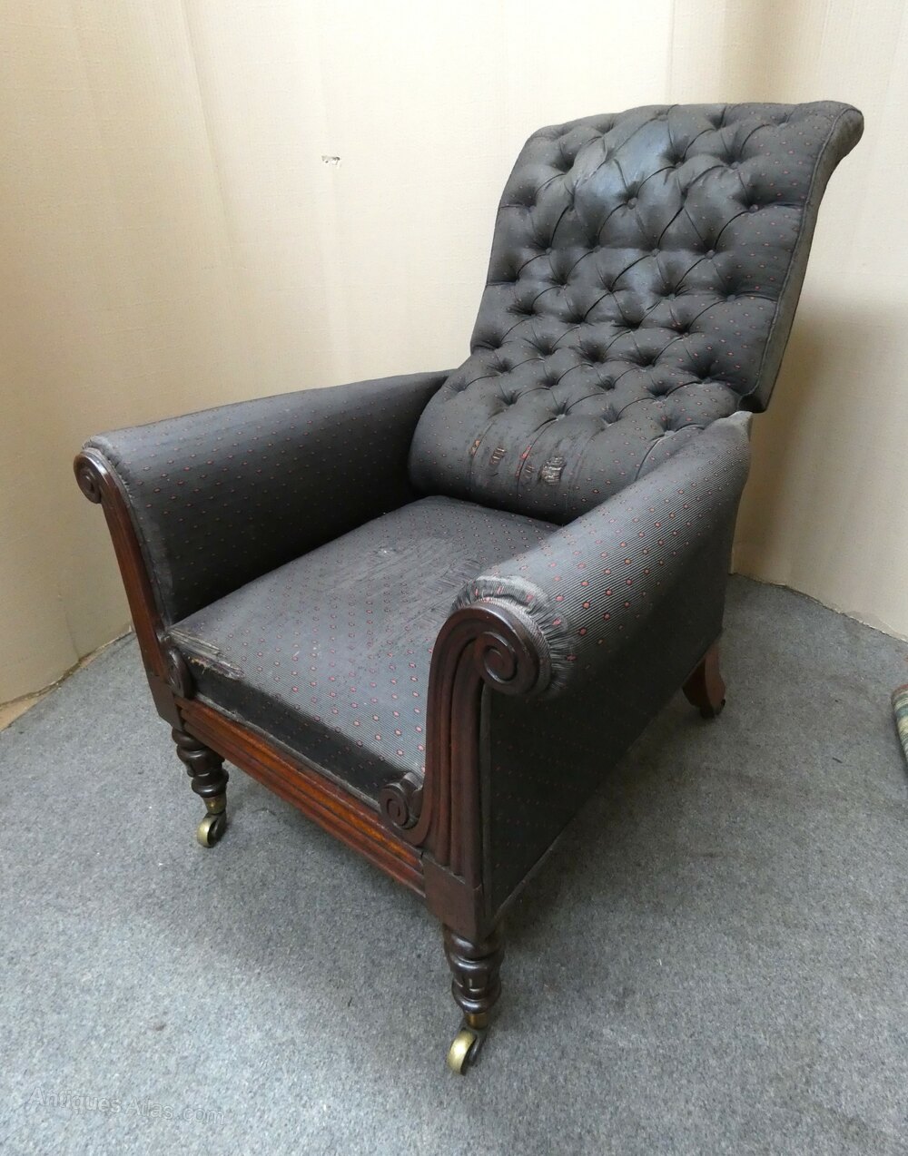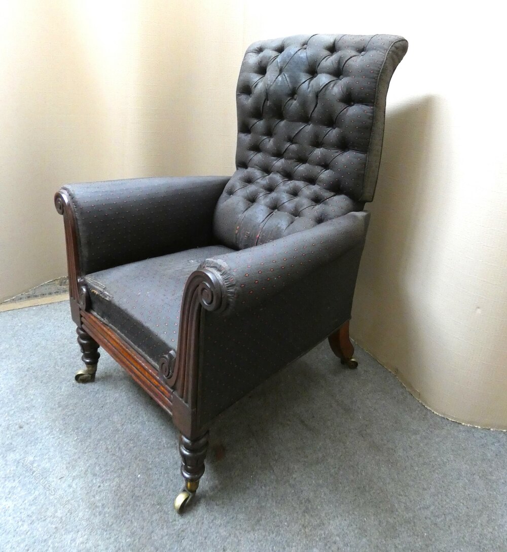 George Minter of Soho was a cabinet maker and upholsterer specialising in patented reclining chairs from 1829 to 1854, many being very well documented.