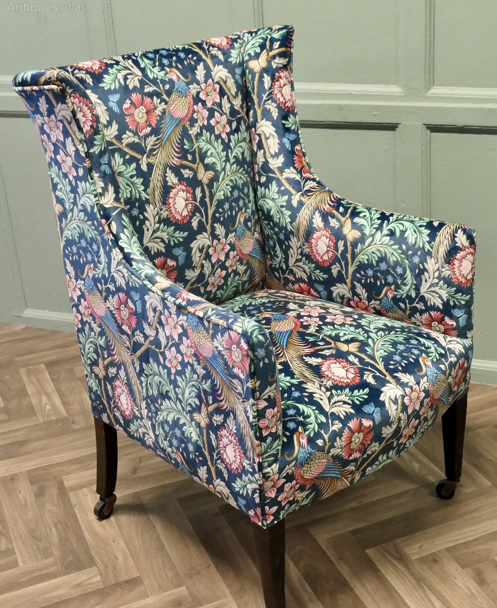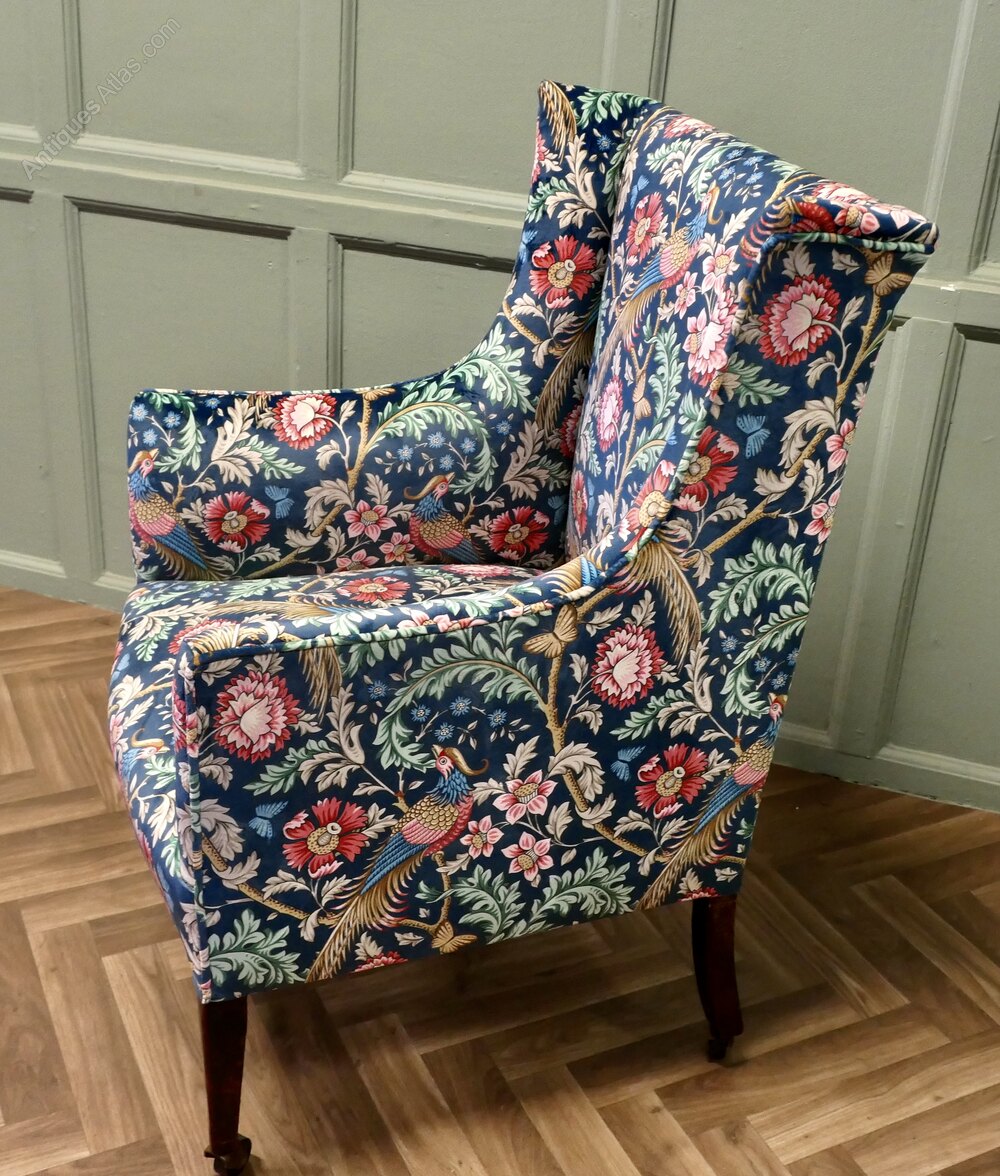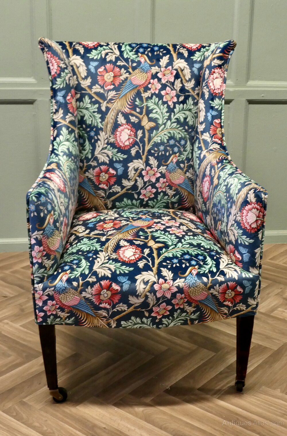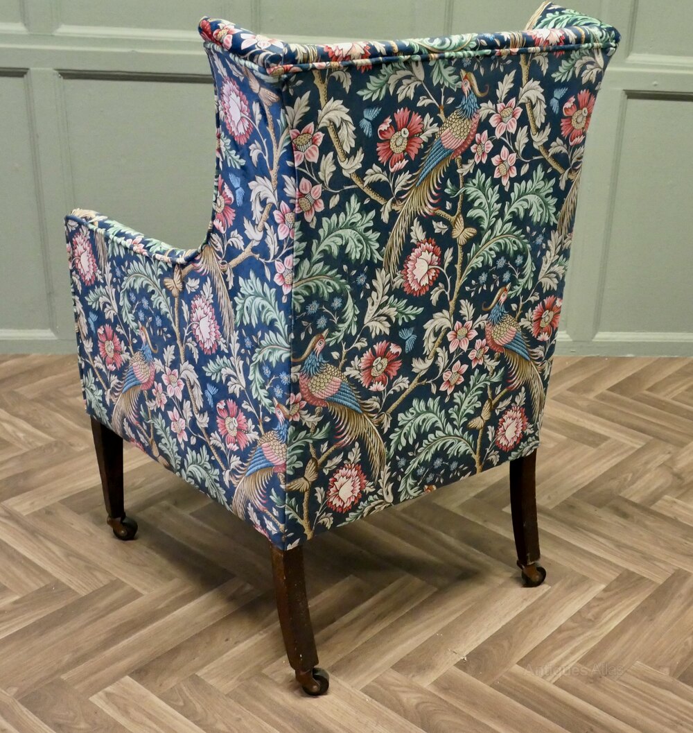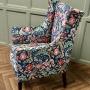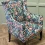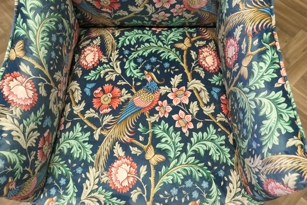 This is a very neat chair, the chair has new upholstery it has been covered with Liberty Blue Oakmere Velvet, a superb soft fabric with birds, flowers and leaves