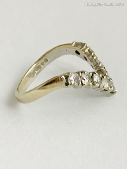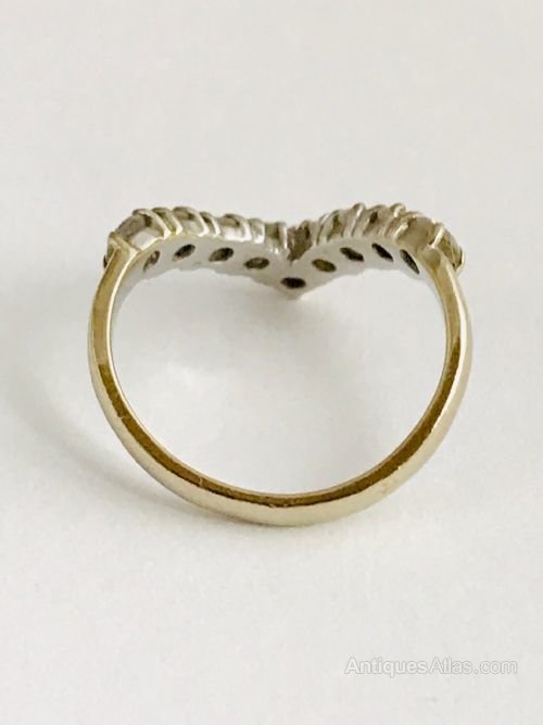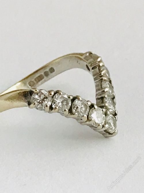 This is a beautiful wishbone ring, with 9 diamonds at 0.1ct each totalling 0.9ct of diamonds. The diamonds are of super quality, they all present sparkly white and look particularly stunning under natural sunlight. This vintage ring would look lovely on any ladies finger, it’ll will make someone very happy because it’s a beautiful ring. The ring is size M and weighs 3.9g.