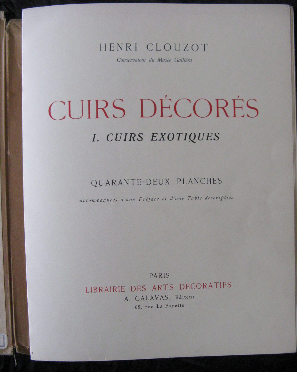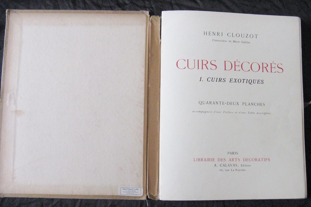 Scarce Rare French First Edition Book Titled Cuirs Decores by Henri Clouzot conservateur du musee gallieraThe book is book 1 cuirs exotiques on the subect of antique painted and decorative leather work dating from the 16th to the 18 centuries.