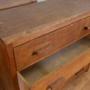 Workshop report – The chests are age faded with genuine marks and sit firm with no wobbles. The oak handles are original and the drawers are moving freely with clean inners. We have treated some old redundant worm as a precaution to the side panels and all is fine. The pieces are ready to place, having been lightly waxed without taking away their past.