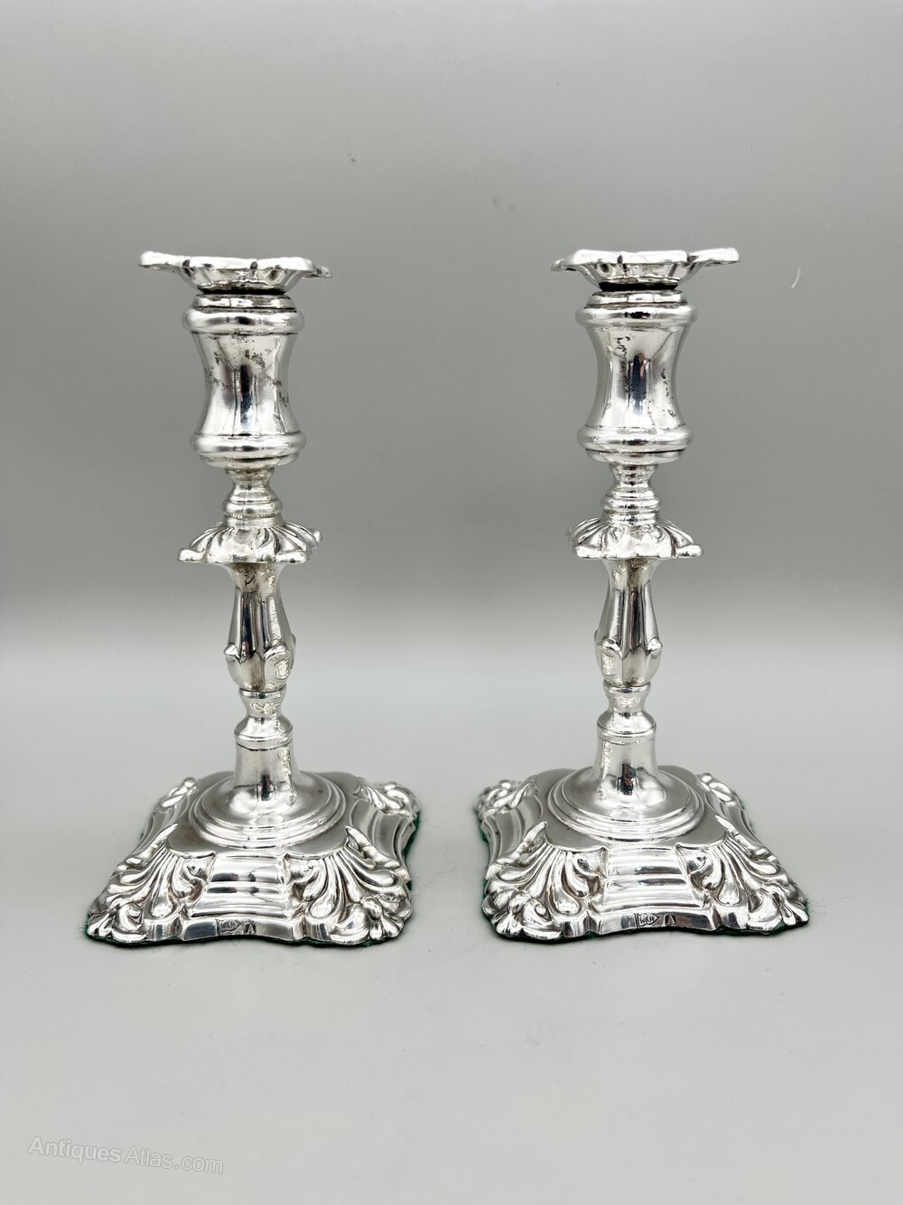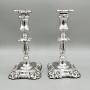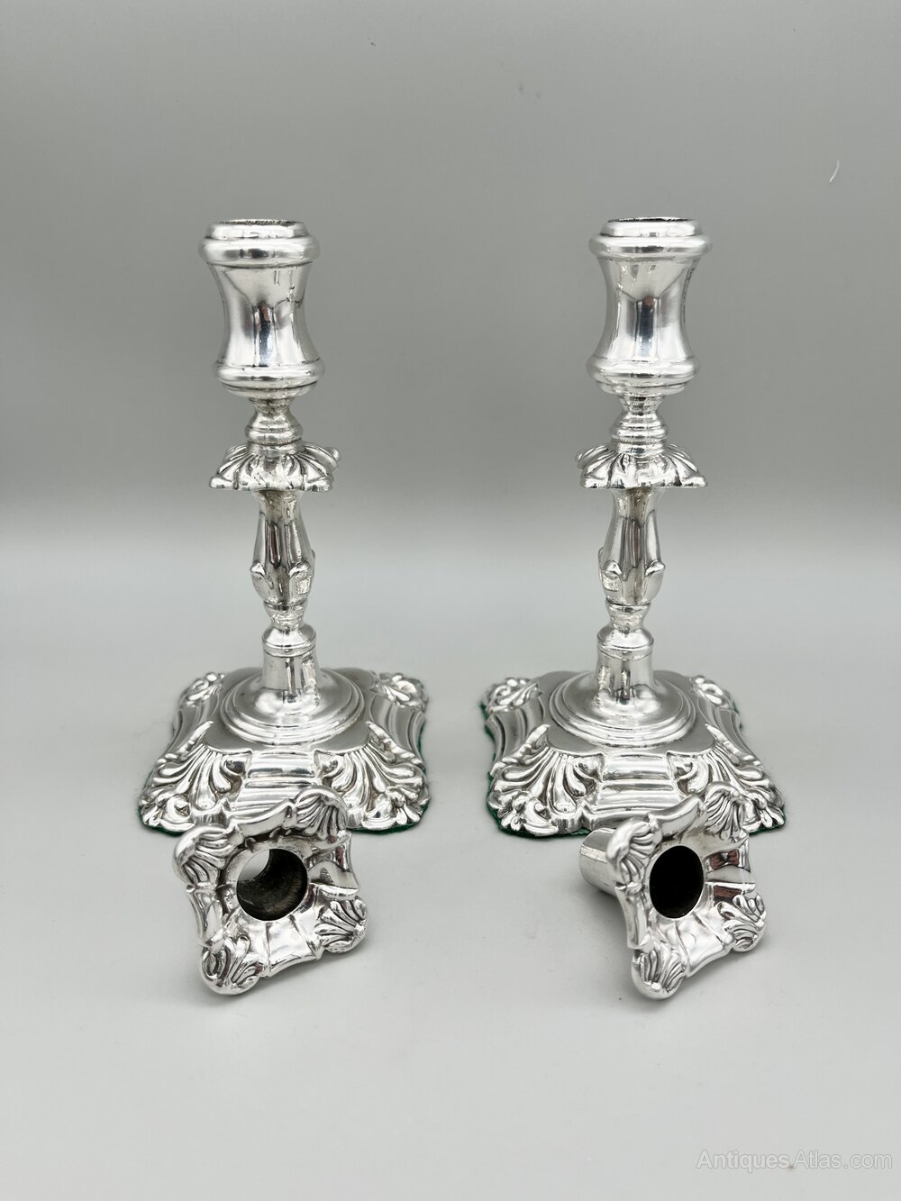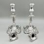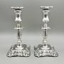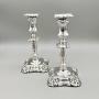 Each candlestick stands 12.3cm / 4.8ins high and is 6.7cm / 2.6ins square across the base. The pair together weigh 305g / 10.75oz.